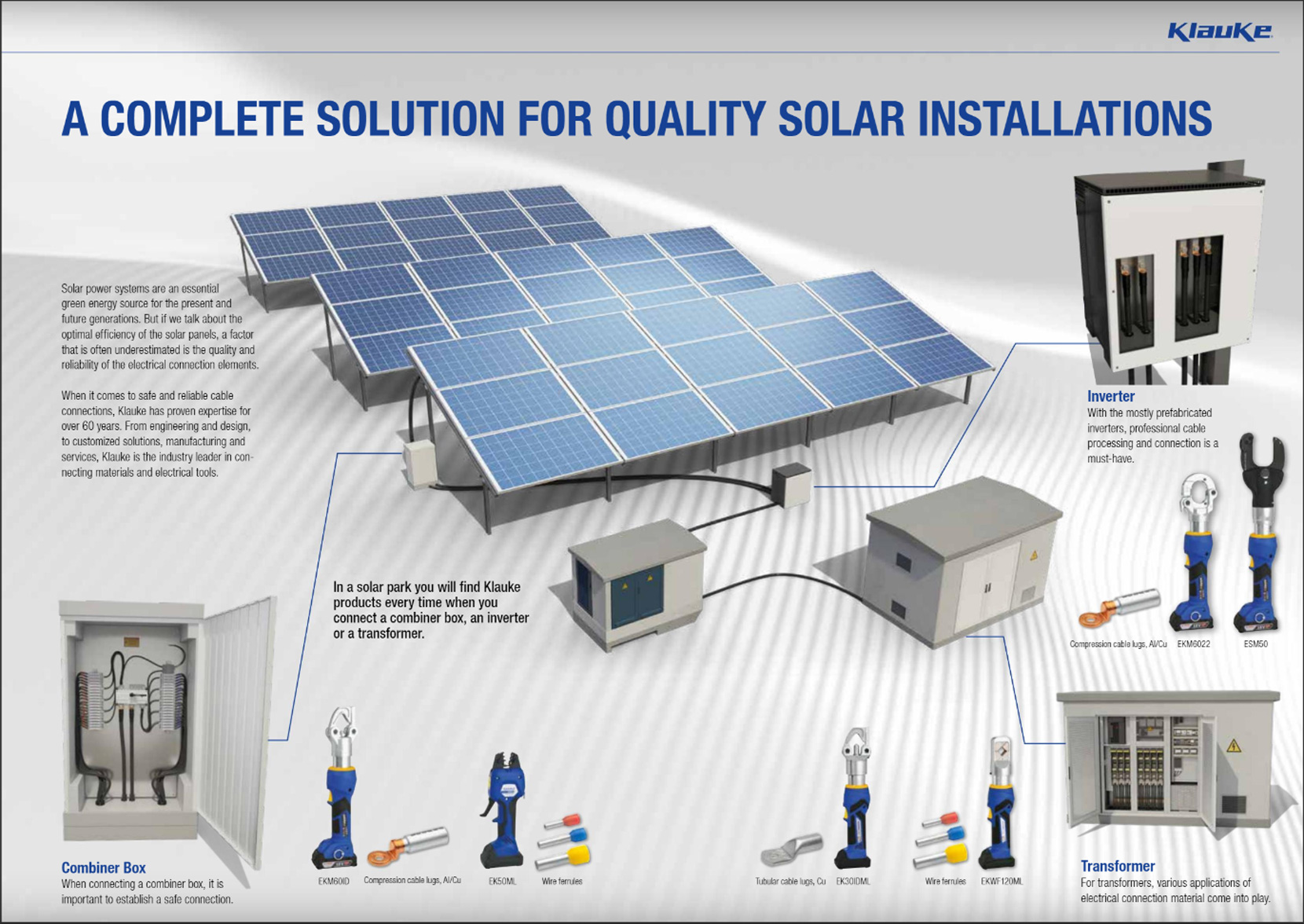 When it comes to safe and reliable cable connections, Klauke has proven expertise for over 60 years. From engineering and design, to customized solutions, manufacturing and services, Klauke is the industry leader in connecting materials and electrical tools.